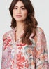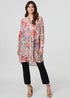 Izabel London Pink Floral Print Longline Semi Sheer Shirt