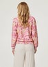 Izabel London Pink Floral Shirred 3/4 Sleeve V-Neck Blouse