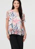 Izabel London Pink Floral Short Sleeve Mesh Layered Top