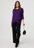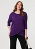 Izabel London Purple Asymmetric Zip Hem 3/4 Sleeve Tunic Top
