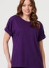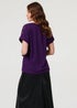 Izabel London Purple Button Trim Short Sleeve Relaxed Top