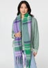 Izabel London Purple Checked Print Oversized Fringed Scarf
