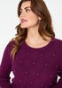 Izabel London Purple Pearl Embellished Texture Jumper
