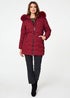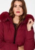 Izabel London Red Faux Fur Hood Thigh Length Puffer Jacket