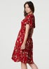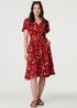 Add a pretty floral print to your dress collection with this fit & flare tea dress. It has a v-neck, short angel sleeves, a shirred waist, button front and a knee length flared skirt. Pair with blush heels for a sophisticated daytime style.