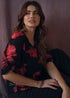 Izabel London Red Floral Semi Sheer Puff Sleeve Blouse