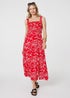 Izabel London Red Floral Square Neck Midi Sun Dress