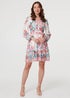 Izabel London Red Floral Tie Waist Long Sleeve Short Dress