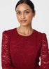 Go for a classic silhouette with this elegant formal dress. It has a beautiful semi sheer lace texture and a fit & flare shape that will flatter all figures. The sheer flute sleeves have a 3/4 length and the neckline is a classic round shape. For an effortless formal look at your next wedding or party, pair with heels and a matching clutch bag.
