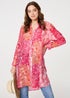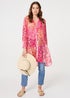 • Izabel London Red Patchwork Print Semi Sheer Longline Shirt