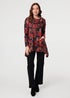 Izabel London Red Printed Long Sleeve Cowl Neck Tunic Top