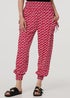 Add a fun printed trouser to your closet with this vibrant geo print harem trousers. With a soft elasticated waistband, side pockets and tapered ankle length legs with soft smocked detail cuffs. Style with a t-shirt and sliders for a comfortable daytime outfit.