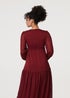 Izabel London Red Sparkly Semi Sheer Long Sleeve Midi Dress