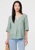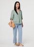 Izabel London Sage Button Detail 3/4 Sleeve Relaxed Blouse