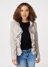 Izabel London Stone Frilled Front Faux Leather Jacket
