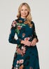 Izabel London Teal Floral Long Sleeve High Neck Midi Dress