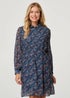 Dress for smart casual occasions in this beautiful short dress. It has a semi sheer layer, long sleeves and a relaxed fit. It also features a tie waist and a collar to give it a professional finish. Style with smart shoes and tights.
