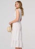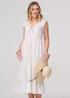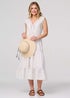 Refresh your summer collection with a classic broderie anglaise dress. With a v-neck, wide bra-friendly straps, a tie front with a lace panel and a tiered midi skirt. Style with flat sandals for a chic holiday outfit.