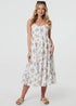 Izabel London White Floral A-Line Cami Strap Midi Dress
