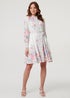 At your next special occasion, this short dress is the perfect choice. It has a high neck, front buttons and a tie waist for a flattering skater look. The sleeves have a long balloon shape, complete with cuffs. Finish the look with heels and a clutch bag.