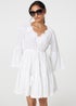 Izabel London White Floral Lace Flare Sleeve Mini Beach Dress