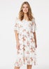 Learn moreAdd a feminine floral print to your warm weather wardrobe with this lace detail midi tea dress. It has a V-neck, shirred waist, 1/2 length angel sleeves, pockets, lace trim detailing and a tiered midi length hem. Pair with neutral strappy heels for a sophisticated style that's perfect for a daytime occasion.
