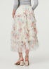 Izabel London White Floral Semi Sheer Mesh Ruffled Midi Skirt