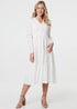 Izabel London White Lace Trim Long Sleeve Tiered Midi Dress