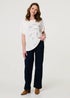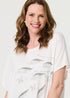 Keep it casual with this embellished top. It's finished with sparkly diamantes for an extra special look - and it has a flattering relaxed fit that will suit all body types. It also has a round neck, short sleeves and is made from a soft viscose blend material. The relaxed fit suits a causal outfit with jeans and trainers.