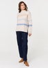 Learn moreAdd this striped jumper to your knitwear collection. It has a high neck, long sleeves and a boxy oversized fit. Thanks to a relaxed side split hem, it will layer beautifully over jeans, trousers or skirts. It's also made from a comfortable viscose blend fabric that will keep you warm on a chilly day.