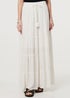 Izabel London White Textured High Waist Tiered Maxi Skirt