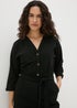 Learn moreUpdate your wardrobe with this statement JDY Black Button V-Neck Jumpsuit. This versatile piece is perfect for any occasion, from day to night. The jumpsuit features a flattering V-neckline, short sleeves, and a relaxed fit that's both comfortable and stylish. The button-up and tie waist design adds a touch of femininity, and the black colour is timeless and chic. Dress it up with heels and a clutch for a night out or pair it with sneakers and a denim jacket for a casual day look.