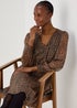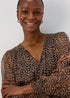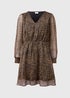 Take a walk on the wild side with this stunning dress! Styled with a black base, it features a trendy brown animal print all-over for a chic touch, elasticated sleeves for extra comfort and a V neck for a familiar fit. Cut from a soft and lightweight material, pair with black or brown footwear to complete the timeless look. Length: Front 92cm / Back 90.5cm.