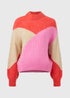 Add a pop of colour to your wardrobe with this gorgeous jumper. Styled in pink, red and beige, it features super chic colour blocking for a trendy touch, snug cuffed long sleeves and a high neck for extra snugness. Crafted from a super soft material, simply pair with leggings or jeans for a sleek finish. Model Height: 5ft 9.