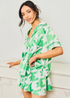 JimJam Green Satin Revere Short Set with Dogtooth Print