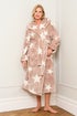 Fun, Funky & Snuggly! This gorgeous printed dressing gown is a must have in your winter wardrobe. This Luxurious fabric in the contrast colour with this unique finish creates the most premium feel. Following a longer length length, this look is completed with the chunky cuffs on the arms & a deep hood.