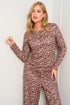 Fun, Funky & Snuggly! The luxurious pyjama set you all need. This pointelle has a beautiful handfeel, a fun all over pirnt, the trousers feature an elasticated waistband and have a loose silhouette giving the perfect fit for both sleeping or lounging in & the garment has been finished off with tonal satin ties to complete the look.