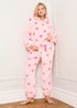 Fun, Funky & Snuggly! This fun strawberry twosie set is the perfect fleece set to throw on at home! Our comfy hoodie features a sleek hooded neckline and long sleeves that feel like a hug. The joggers' elasticated waist sits comfortably on your hips and the cuffed leg brings the regular fit legs to an elegant taper.