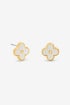 Our 18K Gold Plated and Mother of Pearl Clover Earrings are crafted with care, this delicate piece features a timeless heart design, symbolizing adoration, and love. With shimmering MOP and finished in radiant 18k gold plating. It’s the perfect addition to any Jewellery collection. Fastening: Post and Bullet Back. Width dimension: 12mm. Length dimension: 12mm.Material: Gold Plated Base Metal.