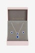Elevate your style with our Rhodium Plated and Cubic Zirconia Double Halo Sapphire Drop Box Set, is designed to captivate. Featuring dazzling double halo drop sapphire details adorned with cubic zirconia and finished in polished rhodium plating, this elegant set adds a luxurious touch to any jewellery collection. Fastening: Lobster Clasp. Width dimension: 9mm, 6.56mm. Length dimension: 17.5mm, 6.56mm. Material: Rhodium Plated Base Metal.