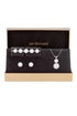 A beautifully boxed three piece jewellery set from Jon Richard. Featuring a pair of crystal cubic zirconia halo solitaire earrings, a matching necklace and bracelet, this set can be worn together or separately with other pieces. Presented in a lovely gift box, this set is the perfect gift for yourself or a loved one. Fastening: Lobster Clasp Fastening/Toggle Fastening/Post and Bullet Back. Chain length: 16". Extender length: 2". Dimensions: NW: 260mm / ER: 10mm. Drop Dimension: ER: 10mm. Material: Silver Plated Base Metal.