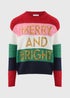 Learn moreGet into the festive spirit with the Multicolour Stripe Merry & Bright Jumper. This cheerful women's jumper features a bold and vibrant multicolour stripe design that instantly brightens up your winter wardrobe. Across the front, the playful "Merry & Bright" slogan adds a festive touch, making it perfect for the holiday season. Layer it over a dress or top for added warmth and style. Part of our joyful trend, combining warmth, style, and comfort to bring a cosy and vibrant touch to your style.