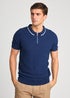 Kensington Eastside Dark Blue Cotton Short Sleeve Zip Neck Polo Shirt