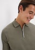 • Khaki 1/4 Zip Liquid Cotton Polo Shirt