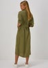 Learn moreThis dress features a 3/4 length design in a versatile khaki hue, providing a stylish and relaxed look. The button-up front, accompanied by a chic collar, adds a touch of sophistication to the ensemble. With long sleeves for transitional seasons, this midi dress is not just fashionable but also practical.