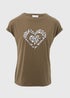 Khaki Heart Slogan T-Shirt