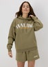Snuggle up in style with our high-quality Khaki Malibu Hoodie. Crafted from a sumptuously soft fabrics, this hoodie is your ticket to all-day comfort. The intricate embroidery across the chest adds a touch of playful charm, making it a standout piece in your casual wardrobe. This hoodie features a drawstring, long sleeves and a hood, ready for all occasions. Pair it with your favourite pair of jeans and trainers for a casual day out or layer it over a simple dress for a cosy street look.