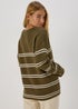 Embrace the classic, nautical style with this jumper. Crafted from a luxurious blend of fabrics, this jumper is not only stylish but also supremely comfortable. The khaki and white stripes are elegantly spaced, creating a balanced visual appeal that is both modern and timeless. The ribbed ottoman knit adds texture and depth to the piece, ensuring it stands out in any wardrobe collection. With its relaxed fit and v-neck design, this jumper offers versatility - perfect for layering over shirts or wearing alone for a more casual look.