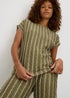 Spruce up your new season style with this khaki co-ord top, featuring a striking contrasting white stripe print. Designed with cap sleeves and a floaty, relaxed fit, it drapes beautifully for effortless polish and comfort. Perfectly paired with the matching trousers, it creates a coordinated, modern look that’s ideal for workdays, brunches, or weekend outings.