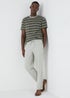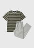 Learn moreEnsure a comfortable night sleep with our khaki stripe pyjama set. This pyjama set features a statement green striped short sleeve top with grey full length bottoms, offering a cool and comfortable look that ensures a peaceful night sleep. The bottoms feature a drawstring waistband to create a perfect fit for a restful night.